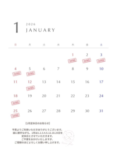 | CANCELLATION POLICY | ・キャンセル、変更は予約日の2日前までに連絡をお願いいたします。 ・キャンセル料は予約画面に記載。 |