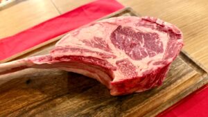 看板メニューの「ステック・フリット」は、300g以上の塊肉を厚さ約30mmのホットストーンでご提供し、