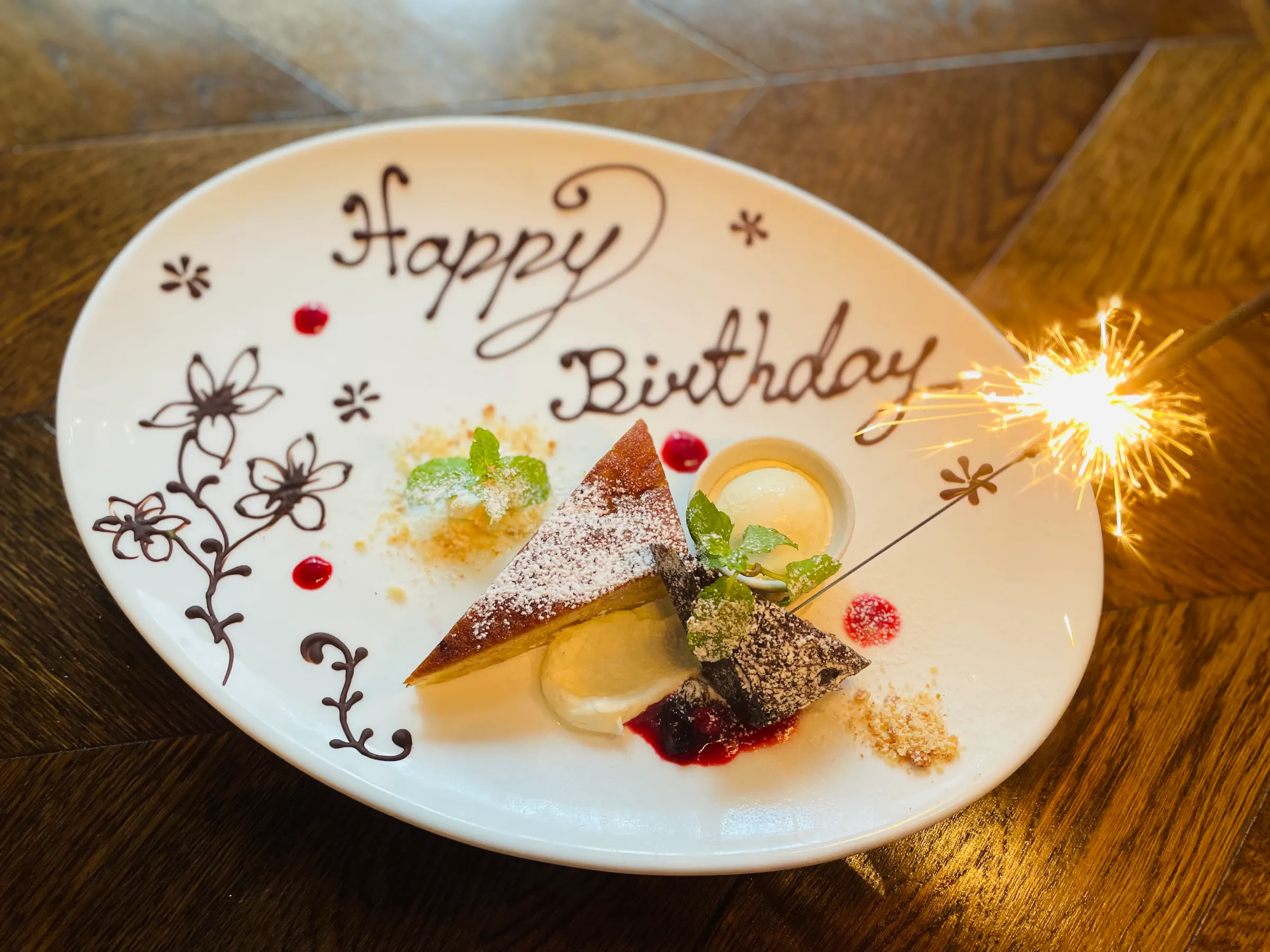 記念日や誕生日には、特別感のあるコースもご用意。前菜からデザートまで、一皿ごとにフランスのエスプリが感じられる内容で、大切な人との時間をより印象的に演出します。事前予約でメッセージプレートやサプライズ演出も可能なので、記念日ディナーにもぴったりです。